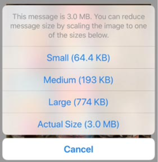 Often photos are sent using their mobile and when sending it can often ask what size you would like to send the images at. Similar to the image on the left. I try to encourage clients to send photos at their 'actual size' as this way we are able to see the full resolution photo.